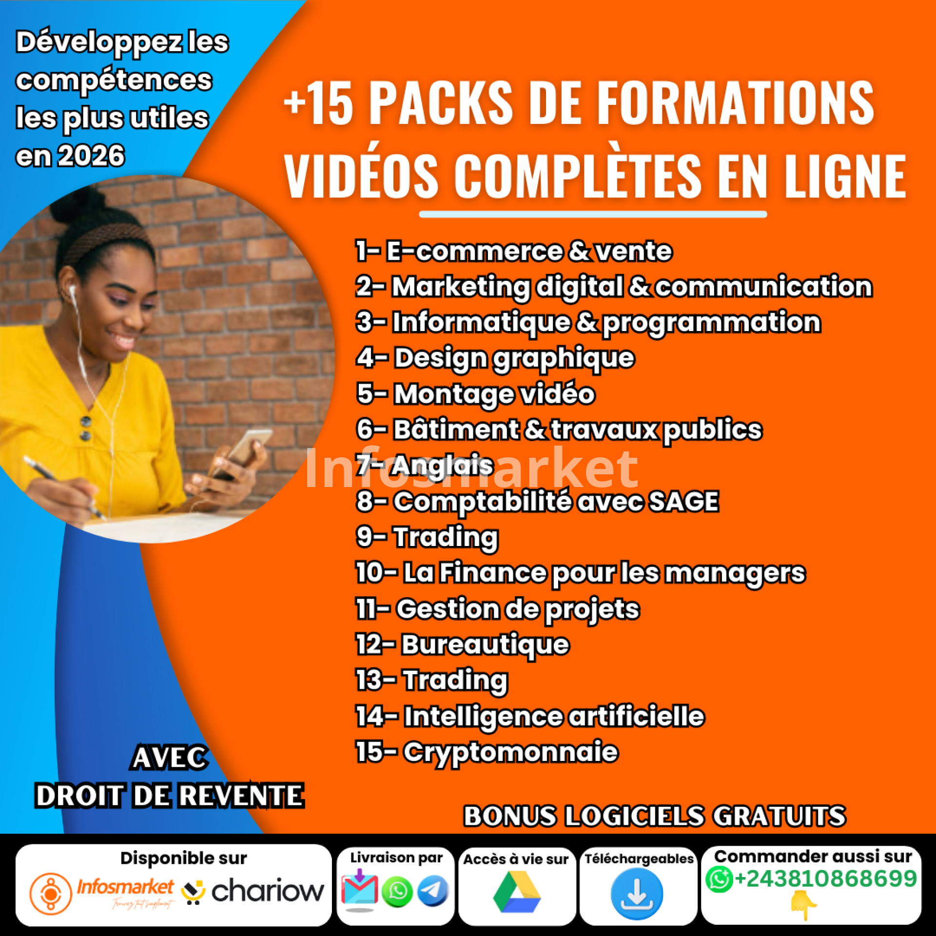 +15 PACKS DE FORMATIONS COMPLÈTES EN LIGNE AVEC DROIT DE REVENTE