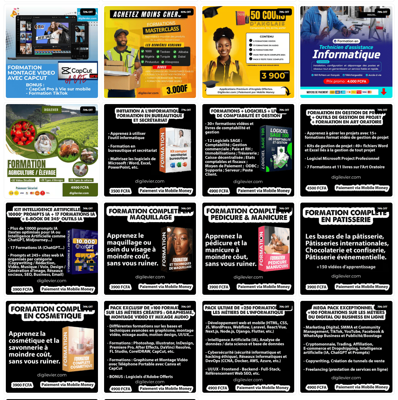 +33 PACKS DE PRODUITS DIGITAUX COMPRENANT +170 FORMATIONS ET BONUS AVEC DROIT DE REVENTE