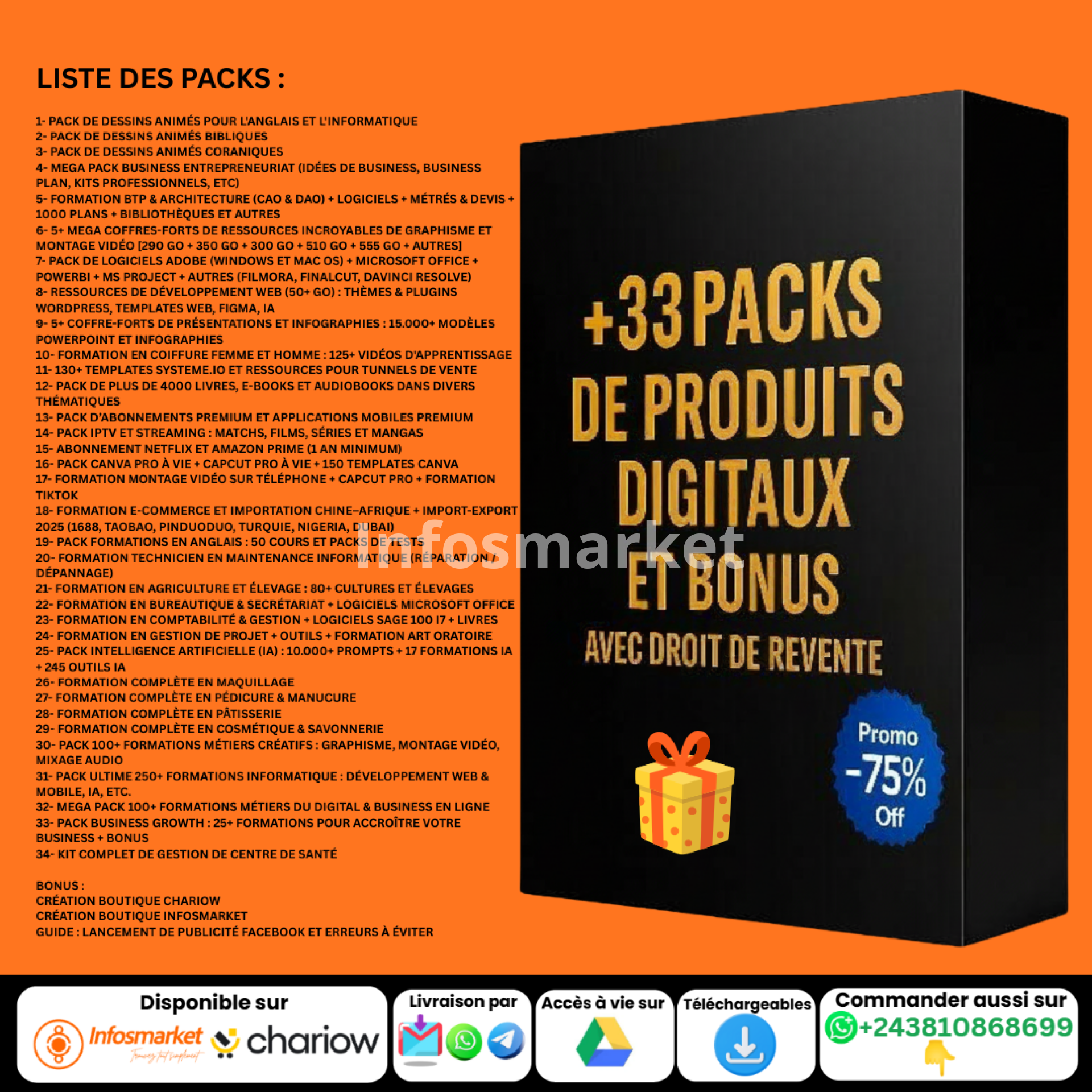 Voici un aperçu du contenu que vous allez recevoir directement en gros qui se vendent aussi en détail :