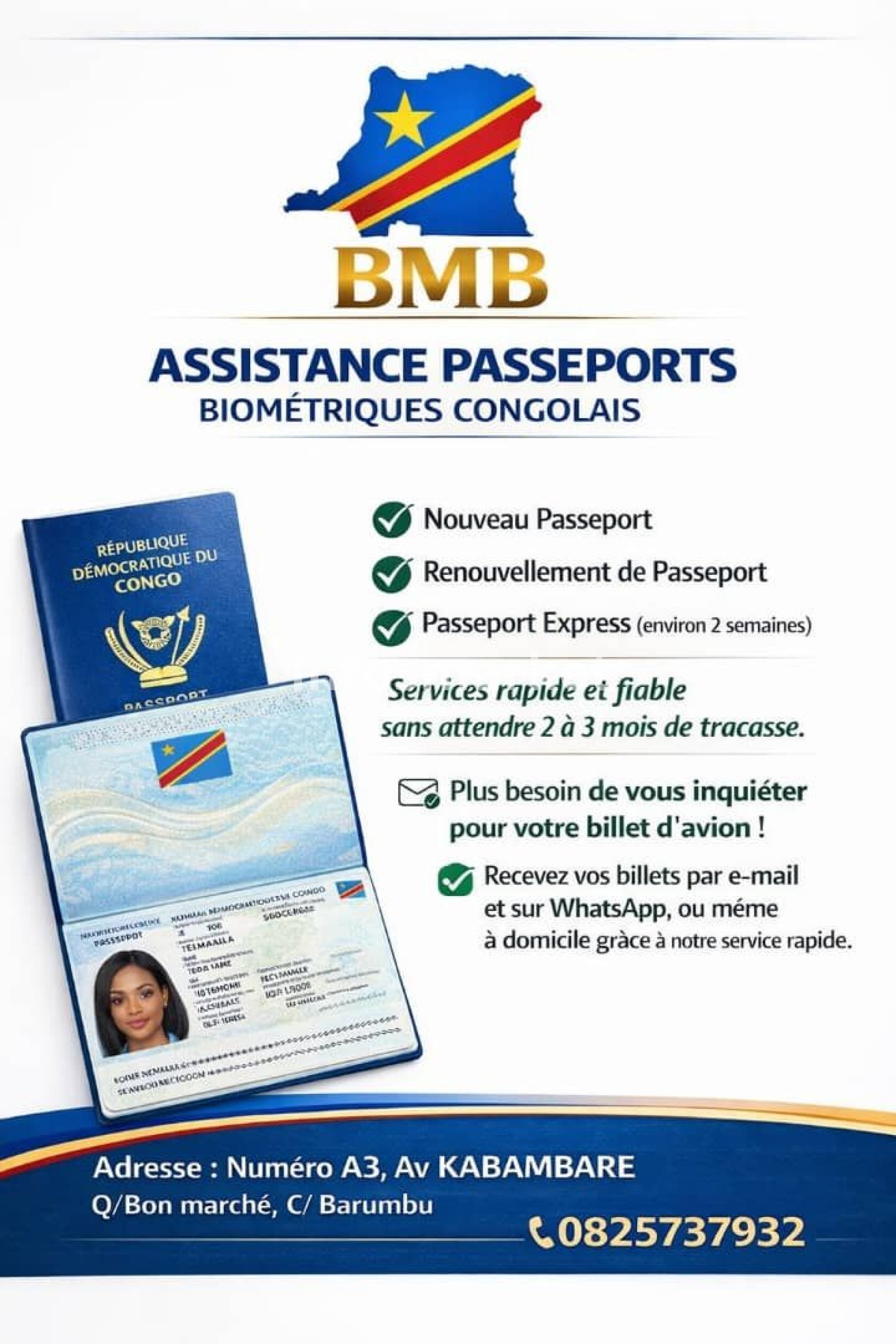 Besoin d’une assistance pour obtenir rapidement votre passeport biométrique congolais ? BMB Business vous accompagne à moindre coût avec un service efficace et rapide.