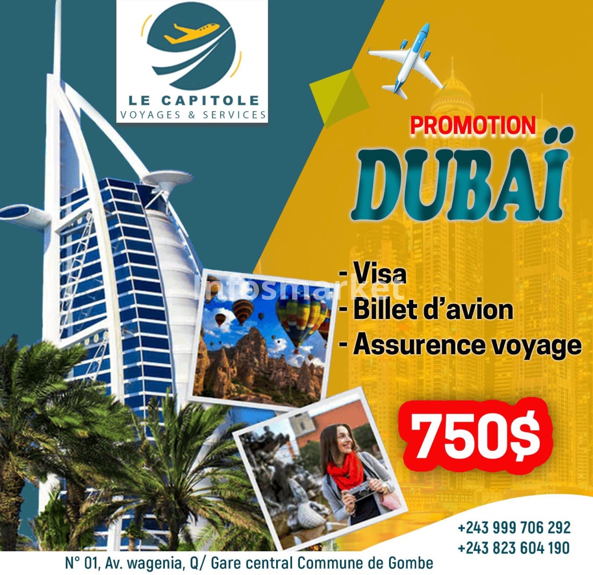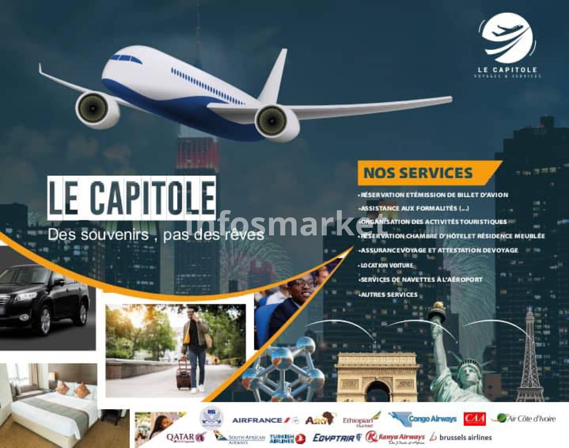 VENTE DE BILLETS D'AVION** (national et international) : Bénéficiez des meilleures offres sur vos vols vers toutes les destinations de rêve.