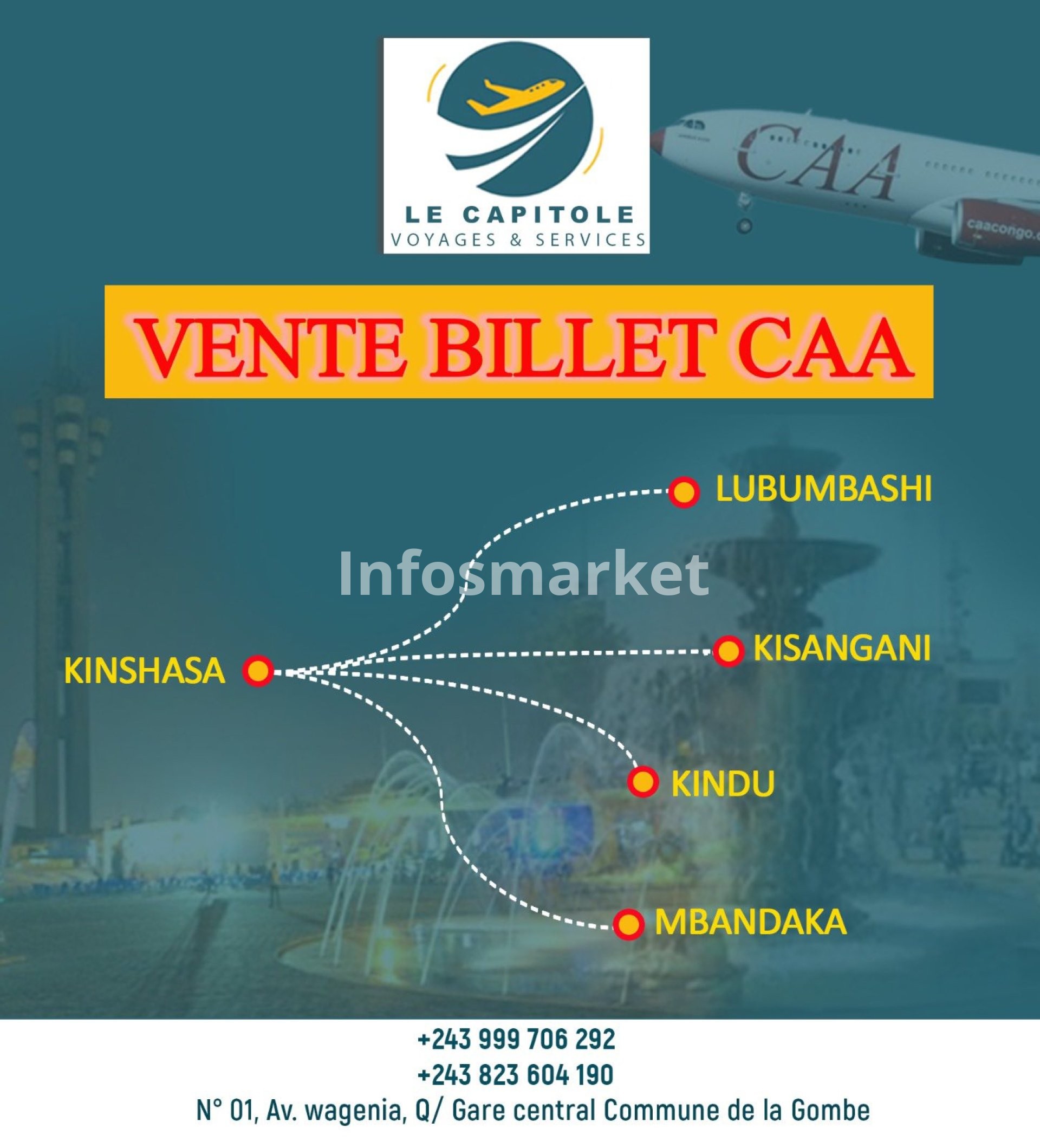 | Emplacement | 01, Av. Wagenia, Q/Gare Centrale, Commune de la Gombe, Kinshasa, Congo-Kinshasa |