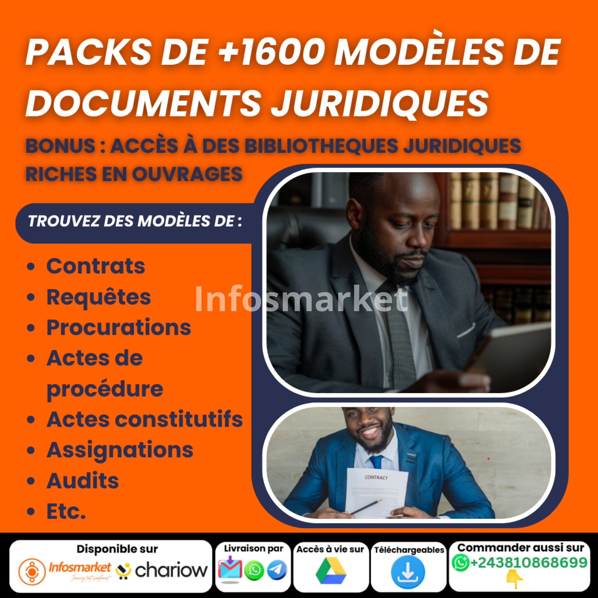 ✔️ Tous les documents sont en formats faciles à personnaliser ✔️ Ils sont rédigés de manière professionnelle et actualisés régulièrement ✔️ Le contenu est adapté au contexte africain et international ✔️ Vous obtenez une véritable boîte à outils juridique, à prix dérisoire