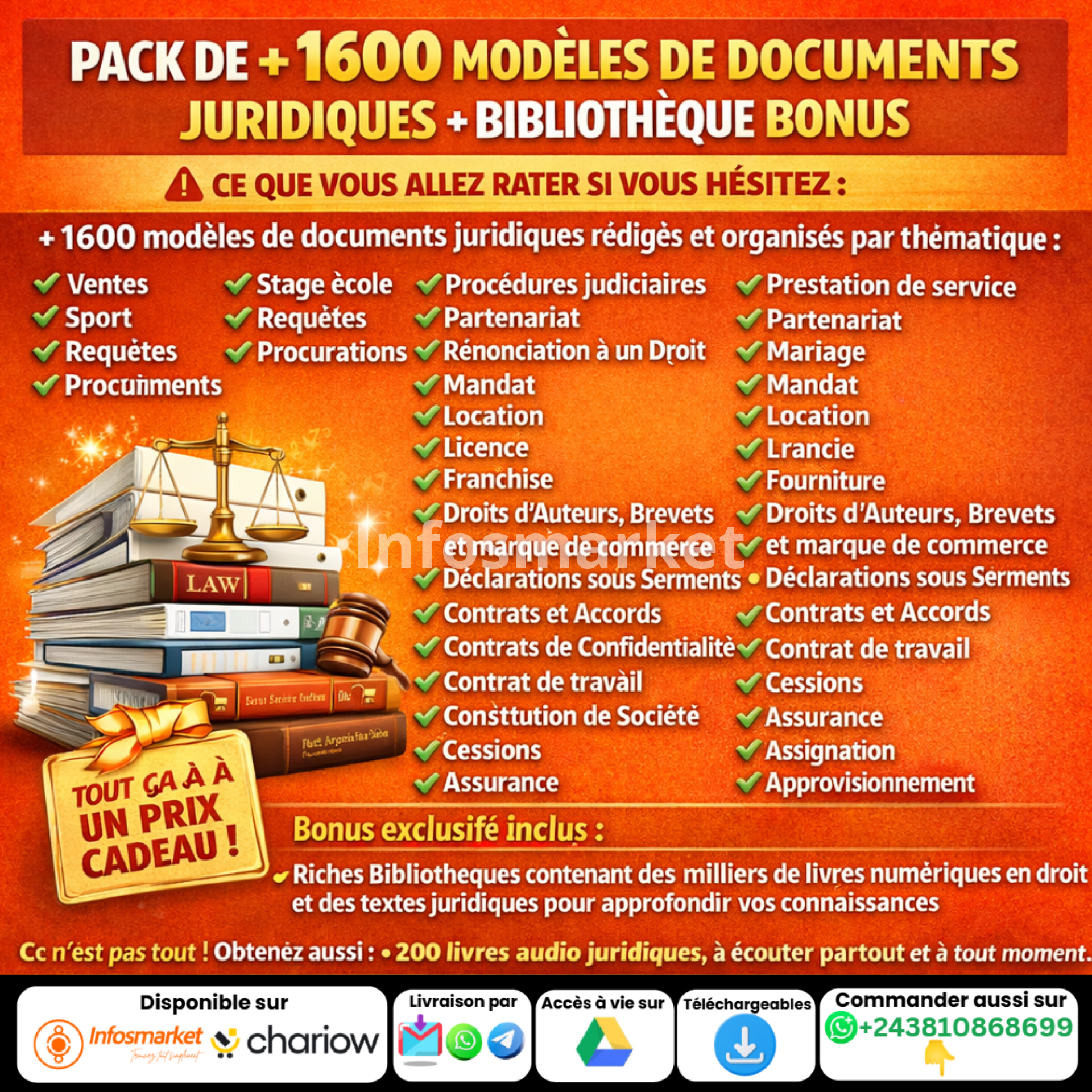 PACK DE +1600 MODÈLES DE DOCUMENTS JURIDIQUES + BIBLIOTHÈQUE BONUS