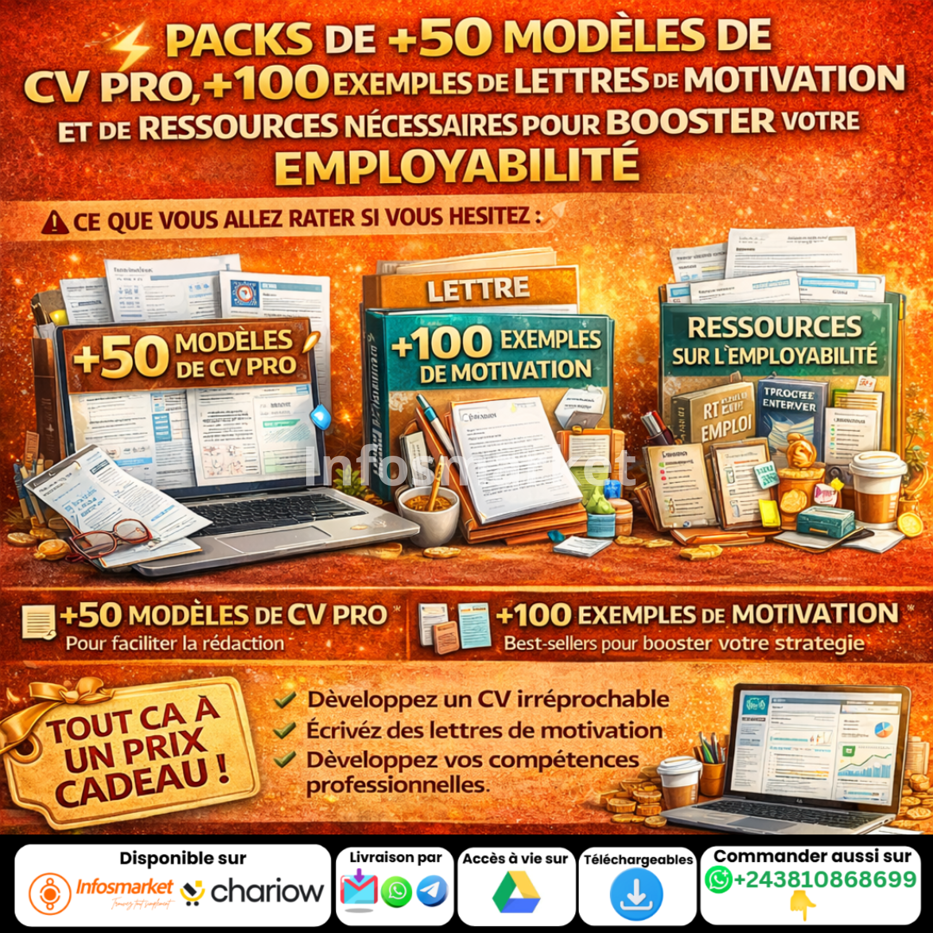 PACKS DE +50 MODELES DE CV PRO, +100 EXEMPLES DE LETTRES DE MOTIVATION ET DE RESSOURCES NÉCESSAIRES POUR BOOSTER VOTRE EMPLOYABILITÉ