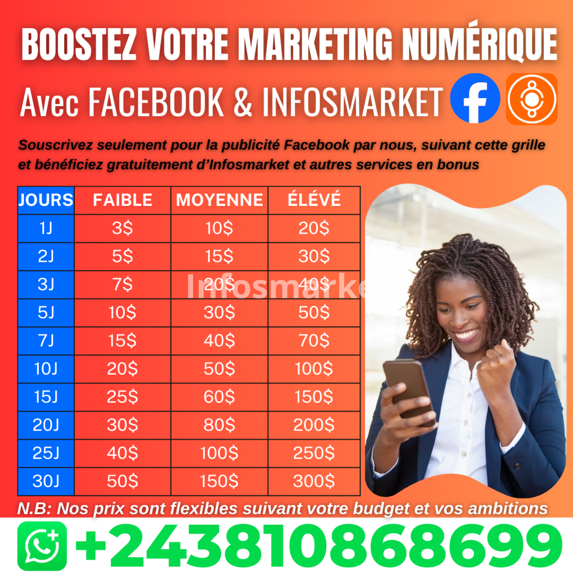 RENFORCEZ VOTRE VISIBILITÉ, ACCESSIBILITÉ, CRÉDIBILITÉ ET RENTABILITÉ EN LIGNE AVEC LA PUBLICITÉ FACEBOOK, LA MARKETPLACE INFOSMARKET ET BONUS